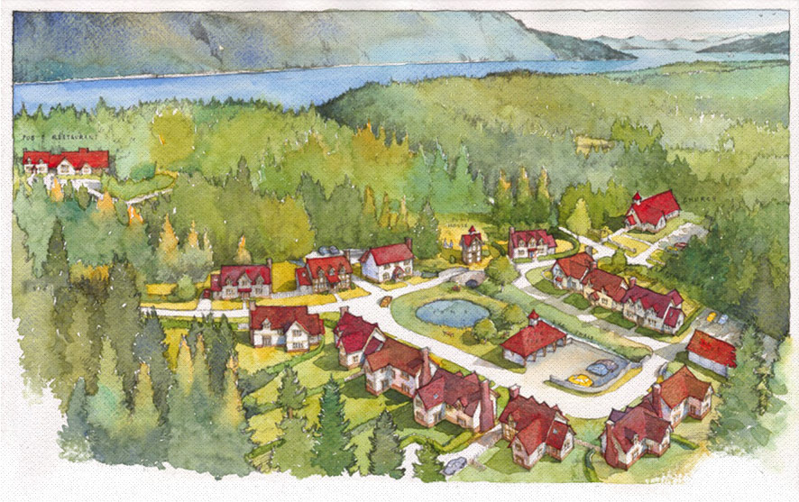 All inclusive, fully furnished executive cottage accommodations that will offer concierge and housekeeping services along with an on-site red seal certified chef, internet and covered parking stalls– starting as low as $200.00 a night per room. Companies will have access to amenities such as a corporate meeting room, a gourmet dining pub within just a few yards, and pedestrian friendly grounds with kilometers of jogging trails, suspension bridges and a dock for floatplane and ocean access. The attractive cottages, lovingly constructed from oak in the mediaeval idiom by the UK's celebrated ‘Border Oak’ will allow a lifestyle that is at the same time both rustic and modern, exquisitely comfortable and supremely private, the perfect environment for working people, their colleagues and their families.